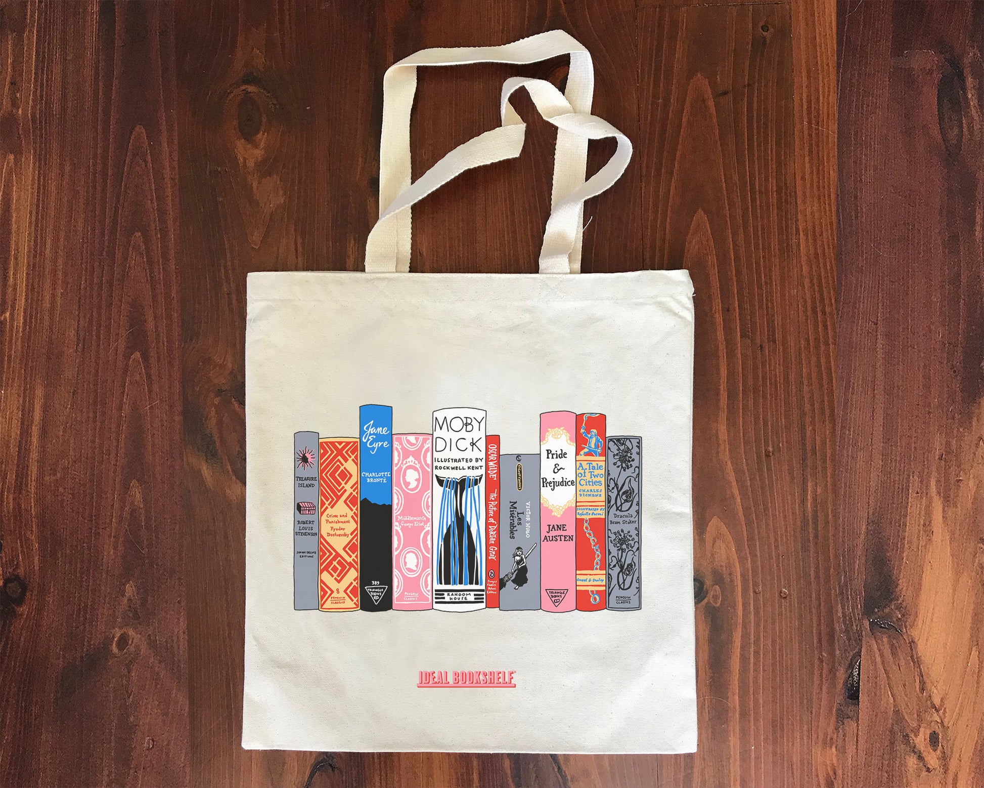 Many of the most beloved books of all time were written in the 1800s. This tote includes Pride & Prejudice, Jane Eyre, Moby Dick, and A Tale of Two Cities.