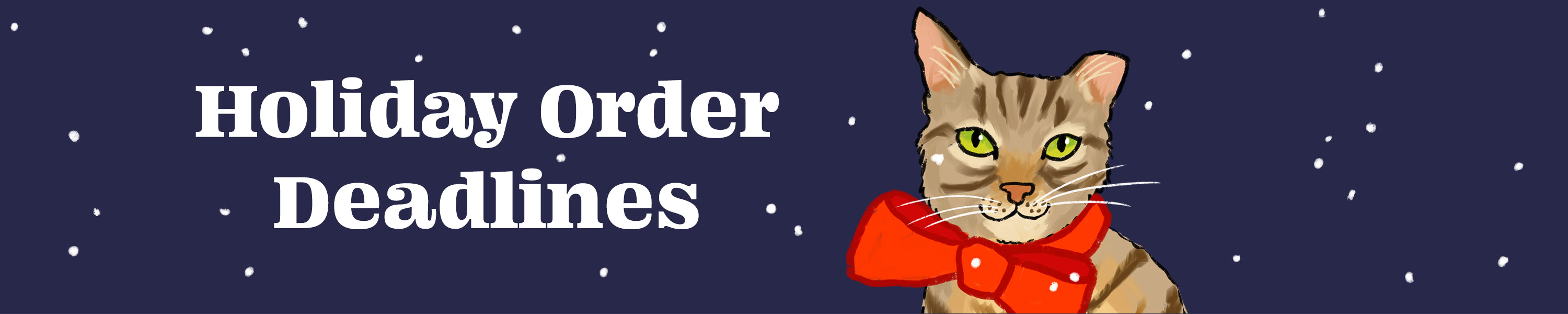 Please order early this year! Deadlines are all earlier than usual due to general shipping slowness and who knows what else. Please note that nothing is guaranteed to arrive anywhere, even in the US, by the 24th this year, but we will try our very best!!